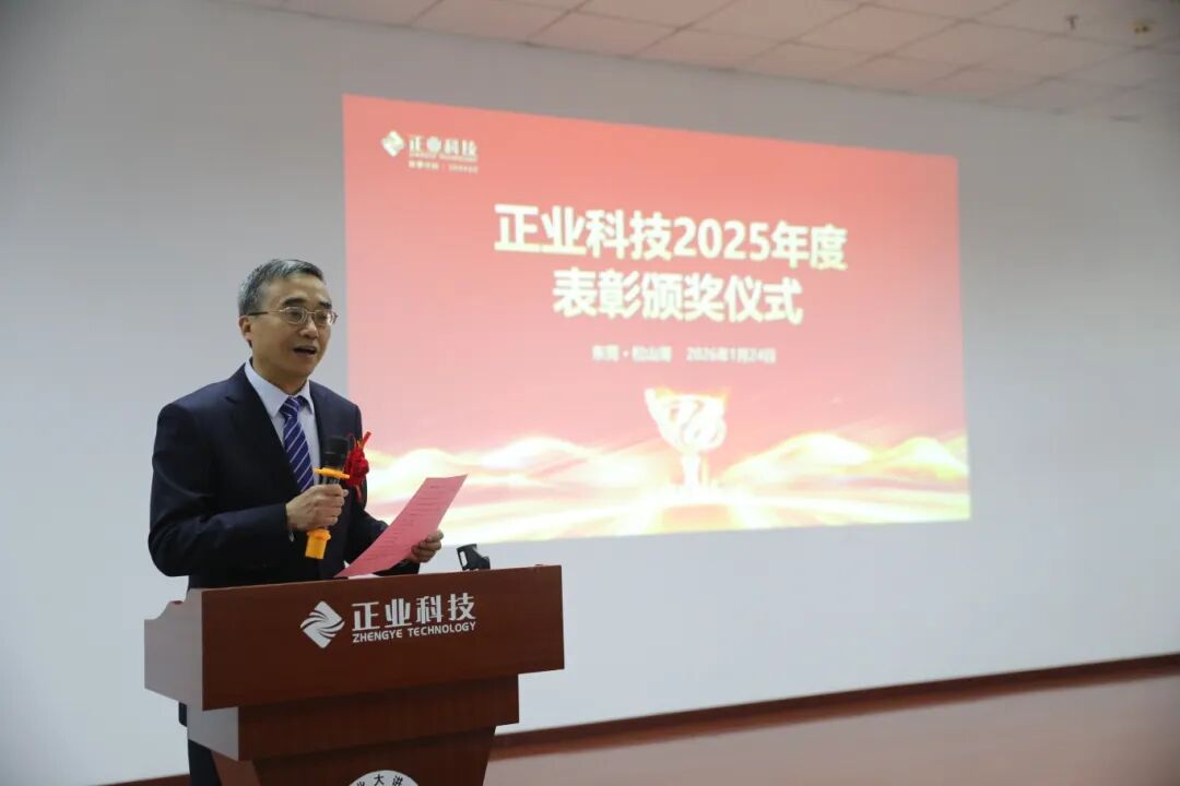2026年1月24日,廣東正業科技股份有限公司(以下簡稱:正業科技)“2025年度總結暨表彰大會”隆重召開。董事長余笑兵、黨支部書記、總裁方志華、黨支部副書記、研究院院長徐地華等集團管理層出席了本次會議,共同回顧2025年的奮斗足跡,共繪新年發展藍圖。
