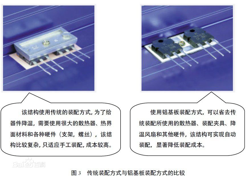 傳統裝配方式與鋁基板裝配方式比較